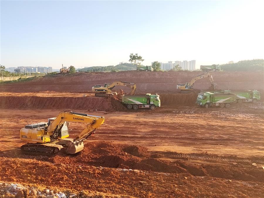 在第七分公司承建的柳江區(qū)新興工業(yè)園柳石路東片區(qū)基礎(chǔ)設(shè)施建設(shè)項(xiàng)目-土方平整工程(三期)施工現(xiàn)場(chǎng),項(xiàng)目管理人員和工人用辛勤的汗水為城市建設(shè)默默奉獻(xiàn)。
