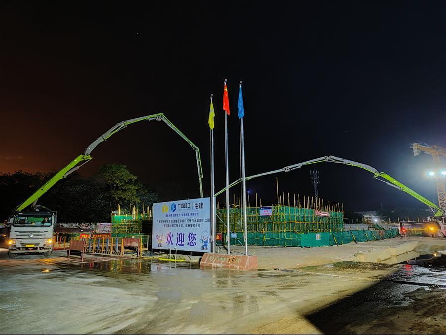 11月17日清晨,天蒙蒙亮,混凝土罐車陸續(xù)駛入基礎分公司承建的柳江拉堡污水處理廠二期及深度處理工程項目,開始進行高效沉淀6.7米平臺梁板澆筑混凝土作業(yè),工人正在準備生物池預埋件安裝及側壁板鋼筋綁扎工作,二沉池計劃在當天開始進行滿水試驗,現場各項工作正在緊張有序地進行。