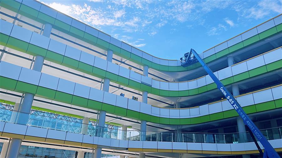 經(jīng)過兩個多月的奮戰(zhàn),項目已進(jìn)入施工收尾階段,并有望提前竣工。當(dāng)前,項目總進(jìn)度已完成90%以上,小學(xué)和初中部共4棟教學(xué)樓及行政樓內(nèi)裝、智能化設(shè)備安裝、電氣等已全部完成,行政樓一樓報告廳除地板正在安裝外,其他已基本完成,風(fēng)雨操場正在進(jìn)行外墻鋁隔板安裝,室外兩個運動場及校園內(nèi)場地鋪裝已基本完成。