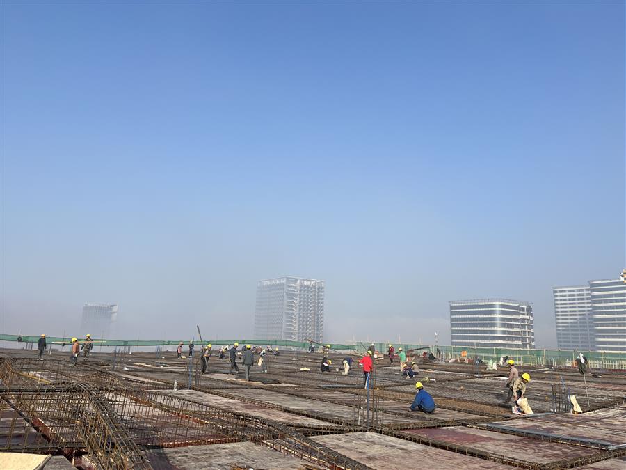 北部生態(tài)新區(qū)智能機(jī)器人標(biāo)準(zhǔn)廠房(二期)1#、2#、5#、7#標(biāo)準(zhǔn)廠房、13#、14#甲類庫房工程項(xiàng)目部統(tǒng)籌調(diào)配資源,科學(xué)組織施工,認(rèn)真抓好項(xiàng)目建設(shè)。該項(xiàng)目總建筑面積10.8萬平方米,目前1#標(biāo)準(zhǔn)廠房主體驗(yàn)收完成,2#標(biāo)準(zhǔn)廠房樁基礎(chǔ)50%,5#標(biāo)準(zhǔn)廠房1-10軸底板墊層完成,11-27軸主體結(jié)構(gòu)封頂。