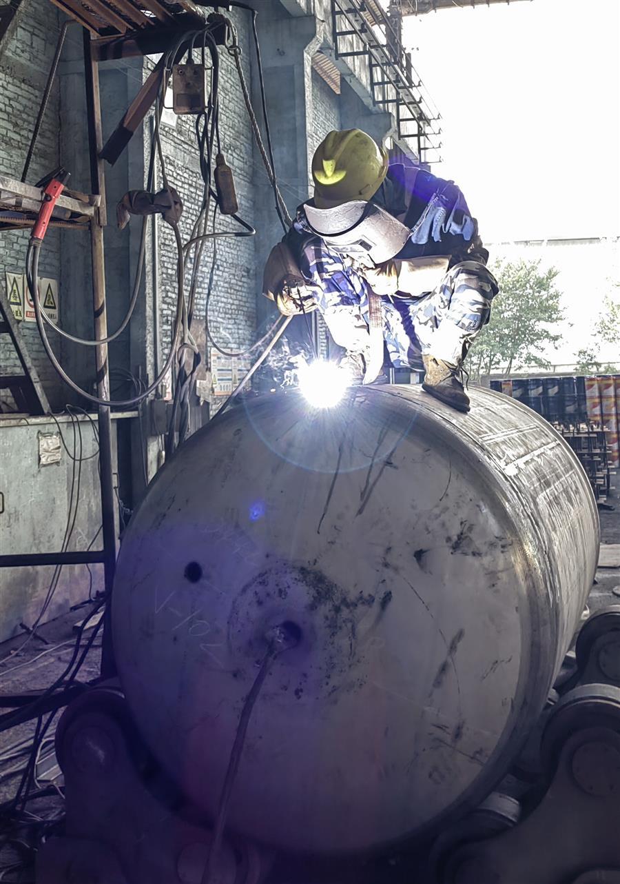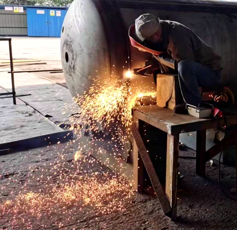 因節(jié)前承接的廣西柳鋼環(huán)保公司鋼渣廠1#廠房氣窗及3-11#柱屋面鋼結(jié)構(gòu)與彩瓦更換工程的鋼結(jié)構(gòu)預(yù)制加工、東莞市鵬錦機(jī)械科技有限公司15臺壓力容器制作需要在春節(jié)后交貨,壓力容器制造廠生產(chǎn)車間的施工人員、管理人員在大年初四就開始進(jìn)入了緊張繁忙的工作狀態(tài)。焊接、打磨相互銜接,作業(yè)有序,全力推進(jìn)設(shè)備趕制工作,現(xiàn)場好不熱鬧。工人們表示,能高質(zhì)量、高效率完成好制作任務(wù),也是一種快樂。