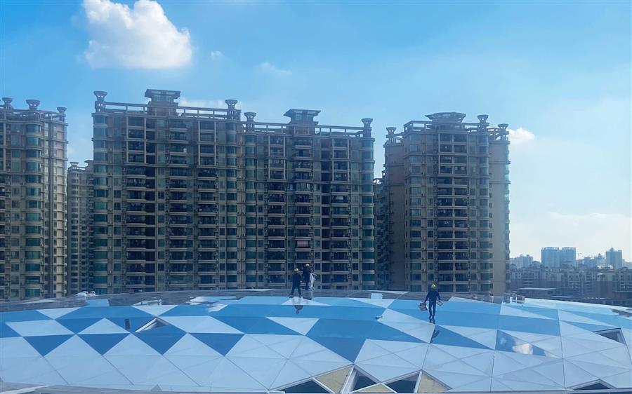 為避開高溫時段作業(yè),項(xiàng)目部倒排工期計劃并及時根據(jù)現(xiàn)場情況更新安排,配足人、材、機(jī)等要素,做好后勤保障。雖然每天提早上班下午推遲上班,但是也難逃滾滾熱浪,在施工現(xiàn)場施工人員頂著高溫“烤”驗(yàn),有條不紊地進(jìn)行各項(xiàng)施工作業(yè),全力推進(jìn)項(xiàng)目建設(shè)。目前,該工程項(xiàng)目屋面、建筑幕墻安裝、屋面鋼結(jié)構(gòu)安裝已完成95%以上,主要進(jìn)行電氣安裝及地下室工程施工。