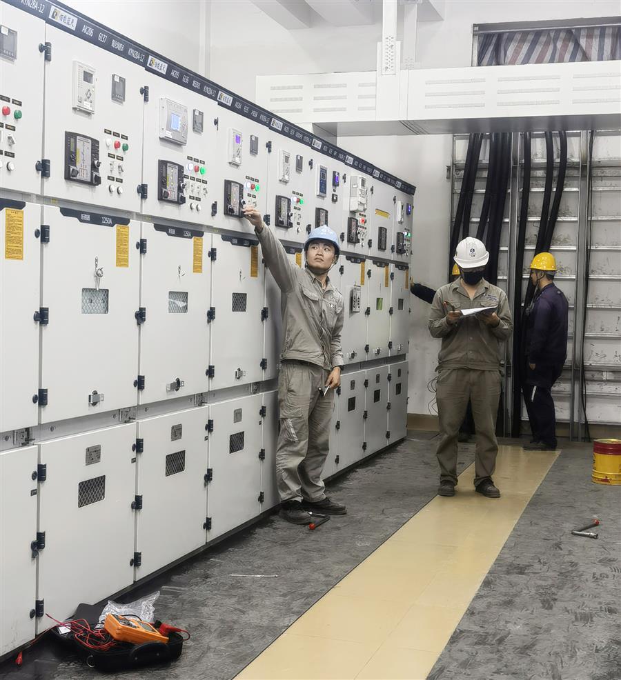 為確保按時(shí)順利送電,項(xiàng)目部多次組織技術(shù)人員對(duì)電氣樓進(jìn)行檢查確認(rèn),特別是對(duì)高低壓柜、隔離開(kāi)關(guān)等設(shè)備的功能、絕緣進(jìn)行了多次檢查和測(cè)試,為保證整個(gè)送電過(guò)程安全順利進(jìn)行創(chuàng)造了有利條件。