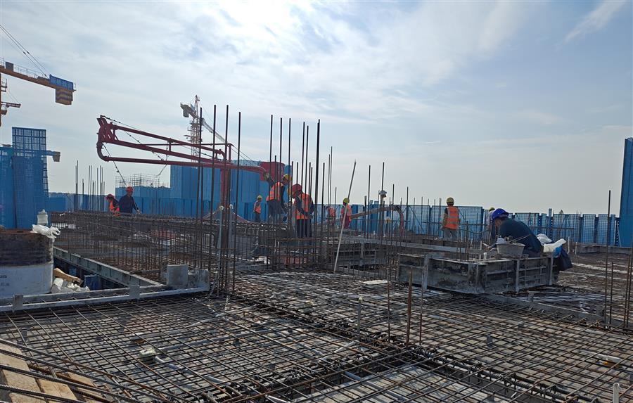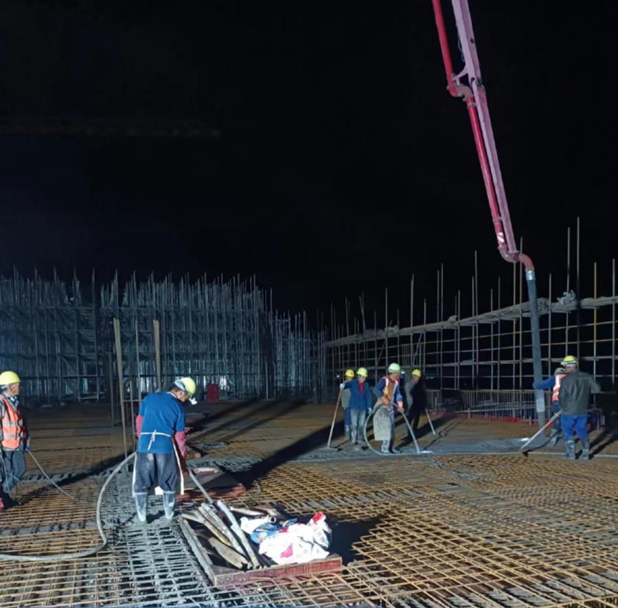 為確保工程快速推進(jìn),項(xiàng)目部實(shí)行兩班制,科學(xué)制定了夜間專項(xiàng)施工方案,倒排工期,規(guī)劃任務(wù)單,明確了各施工點(diǎn)的建設(shè)內(nèi)容、時(shí)間節(jié)點(diǎn)以及相關(guān)責(zé)任人,有序推進(jìn)夜間施工作業(yè)。目前,中試車間一層二次結(jié)構(gòu)砌筑完成;1#、2#生產(chǎn)車間正在搭設(shè)49-57軸模架及進(jìn)行40-45軸剛性地面施工;宿舍樓在進(jìn)行4層梁板砼澆筑和頂板模板、鋼筋施工;倉庫在進(jìn)行2層梁板砼澆筑和2層模架搭設(shè)。累計(jì)完成產(chǎn)值約1.15億元,完成合同造價(jià)的23.5%。