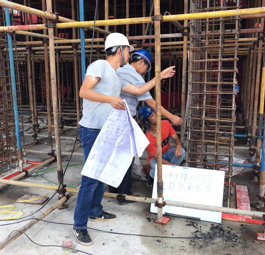 6月18日,在桂華分公司承建的梧州佛子時代廣場項目現(xiàn)場,當(dāng)空烈日讓偌大的工地一片熾熱,焊花飛濺,工程車來來往往,工人們揮汗如雨。雖然施工作業(yè)已經(jīng)避開了高溫時段,但工人們?nèi)员缓顾粤搜劬Γ瑵窳艘路?。盡管這樣,大家仍堅持“全副武裝”,手套、防護用具,安全帽,一樣都沒有少,自覺遵守安全文明施工相關(guān)規(guī)范。入行兩年的施工員趙俊財抹了一把汗說道:“剛參加工作時,不能和家人一起過節(jié)還挺難受的,后來把心態(tài)調(diào)整好了,想著只要家人安好,其實比什么都重要,趁著年輕,還是應(yīng)該多奮斗。”看著一米八大個的他手拿圖紙和卷尺,蜷縮著身子,蹲在空間有限且熱得發(fā)燙的平臺上仔細(xì)檢查剛剛綁扎好的鋼筋籠,驕陽烤得他黝黑的皮膚泛出一層水光,襯著那還略顯年輕的臉龐,顯得熠熠生輝。