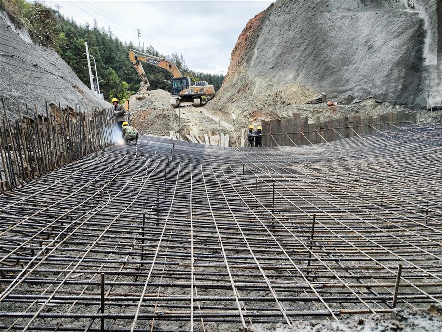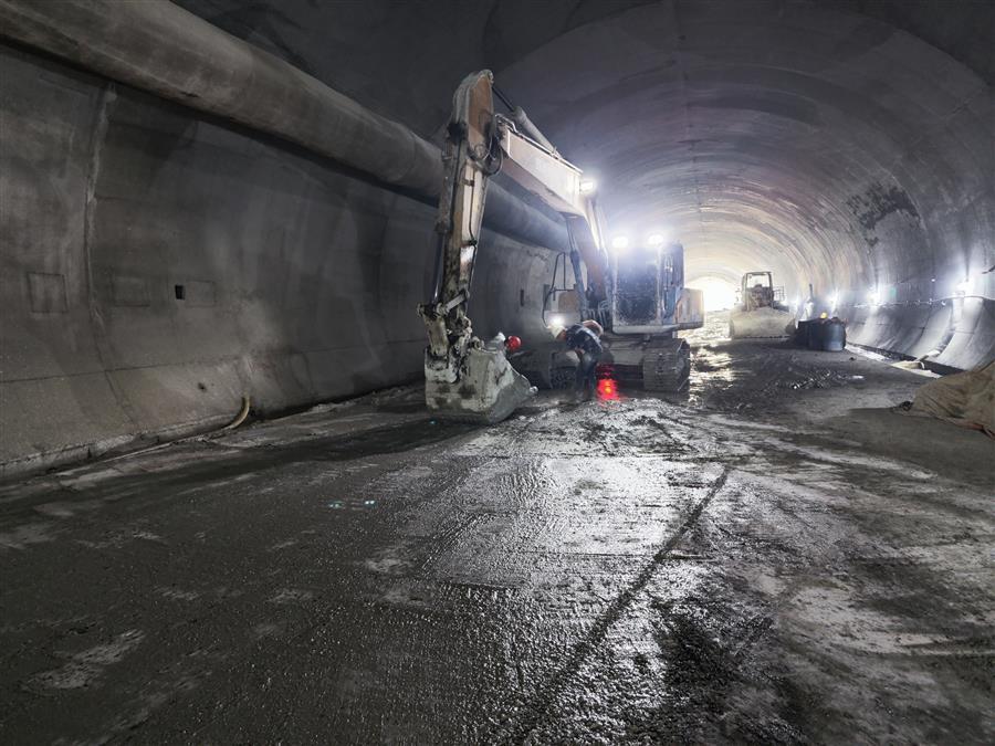 在施工現(xiàn)場(chǎng),機(jī)器轟鳴,挖掘機(jī)正在對(duì)隧道明洞部分的土方進(jìn)行開(kāi)挖,出渣車(chē)有序作業(yè)外運(yùn)渣土;工人們正有條不紊地焊接、搭建地連墻鋼筋籠;在隧道深處,一臺(tái)挖掘機(jī)在操作人員的操控下,正揮動(dòng)著“手臂”,配合著工人在對(duì)隧道路面做清理?!盀榧涌祉?xiàng)目施工進(jìn)度,我們采取人員倒班、設(shè)備不停,白天晚上不間斷施工。”項(xiàng)目經(jīng)理介紹說(shuō),目前隧道工程已全面貫通,爭(zhēng)取在春節(jié)前完成仰拱和墻供二襯砼澆筑。