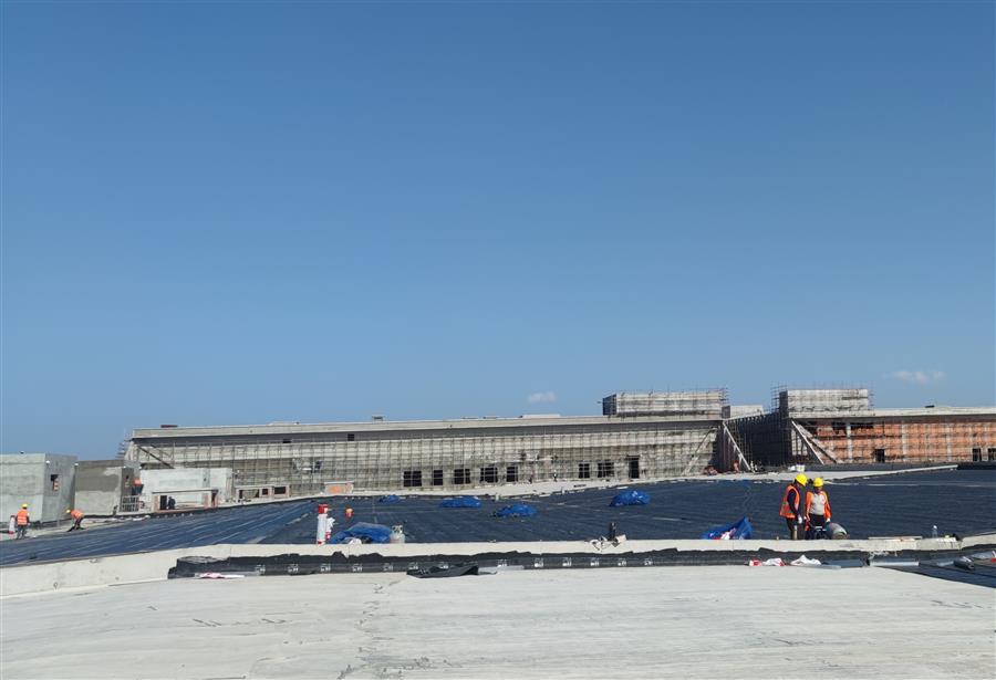 走進50Gwh鋰電池產(chǎn)業(yè)基地(新能源電池標準化廠房)一期項目施工現(xiàn)場,機器轟鳴,工程車來回穿梭,施工人員忙碌作業(yè),水電消防安裝、屋面防水卷材鋪貼、內外墻抹灰、門窗窗框安裝、抗裂砂漿和室外管網(wǎng)路基施工等工作緊張有序地進行中。為應對項目體量大、工期緊的情況,項目部緊扣節(jié)點目標掛圖作戰(zhàn),逐項細化分解工程量,量化任務清單,制定日工作進度表,錨定目標精準發(fā)力,做到畫“圖”定責、按“圖”推進、看“圖”指揮,實現(xiàn)以日保周、以周保月、以月保季,確保了目標任務按序按時推進,曾以不到5個月的時間實現(xiàn)了項目包含的15個單體工程全面封頂。