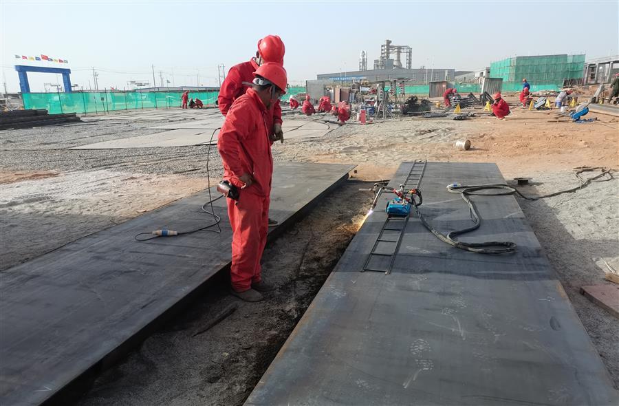 為了保障工程進度,在確保安全和質量的前提下,建設者們日夜奮戰(zhàn)在項目工地,全力加快項目建設。目前,項目整體進度完成55%,廠房配套臨建主體設施完成65%,1500方儲油罐體焊接已完成10個,完成項目整體罐體焊接55%。剩余工藝管道配套管網正在場外工廠緊鑼密鼓地進行生產加工,隨后運到廠區(qū)進行拼接組裝。
