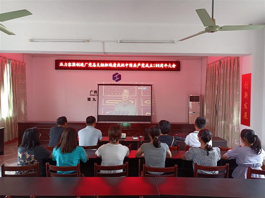 公司黨委組織員工收看慶祝中國共產(chǎn)黨成立100周年大會(huì)直播。公司領(lǐng)導(dǎo)班子成員覃振華、蒙勝益、賴海標(biāo)、廖立波、唐峰、阮仁勝、周善學(xué)、何勇,代財(cái)務(wù)總監(jiān)李芝霞,副調(diào)研員劉國江以及各基層黨組織黨員以集中或個(gè)人收看方式觀看大會(huì)直播。