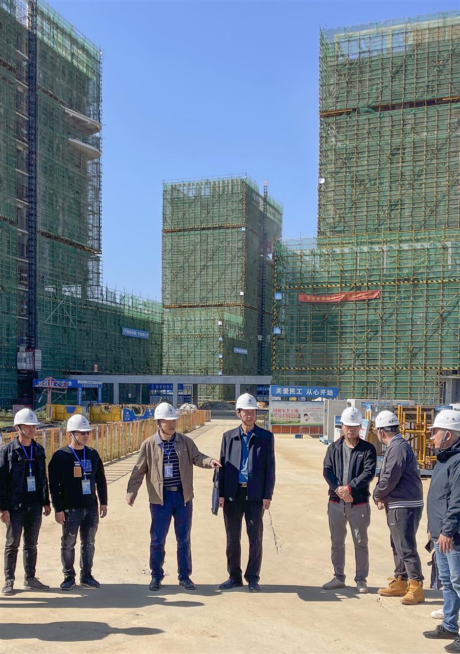 何勇深入項(xiàng)目施工現(xiàn)場,詳細(xì)了解項(xiàng)目安全質(zhì)量、建設(shè)進(jìn)度等情況,并對模板、外架、臨時(shí)用電、樓層臨邊防護(hù)、農(nóng)民工工資發(fā)放、疫情防控等工作進(jìn)行了仔細(xì)檢查。