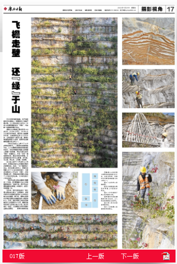 120日,《廣西日報》用一個整版、圖文并茂報道桂華分公司承建的柳州市樓梯山采石場山體復(fù)綠工程,介紹項目建設(shè)以及植綠和管護(hù)的工作成果。公司將一如既往地踐行習(xí)總書記提出綠水青山就是金山銀山的理念,致力于綠色發(fā)展,努力為柳州市生態(tài)文明建設(shè)貢獻(xiàn)更大力量。
