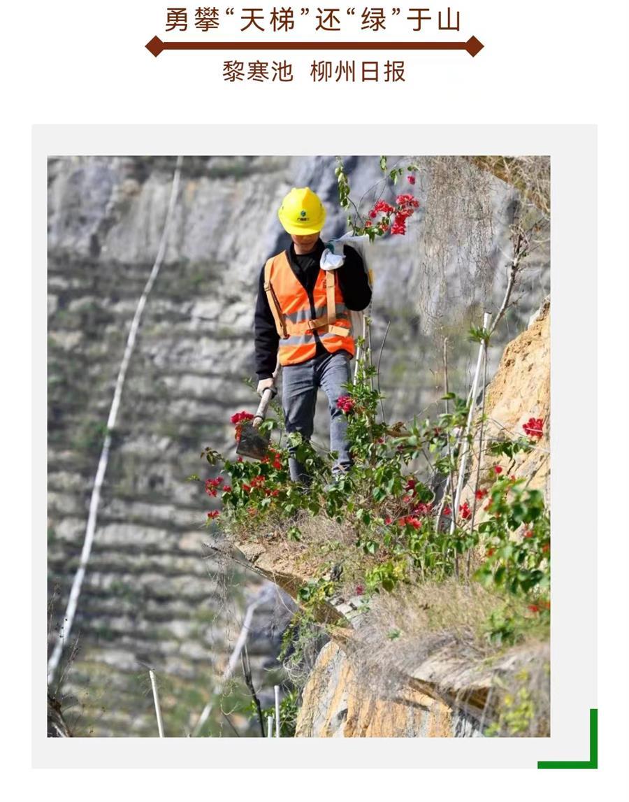 近日,“神奇神木杯”第31屆人民攝影“金鏡頭”(2021年度)新聞攝影作品評選在陜西省神木市揭曉。柳州日報社記者黎寒池拍攝的冶建公司桂華分公司承建的柳州市樓梯山采石場山體復(fù)綠工程項目作品——《勇攀“天梯”還“綠”于山》獲自然環(huán)境新聞類組照金獎,此獎是時隔20年后,廣西攝影師再次在該賽事中獲獎,并斬獲廣西首個金獎。