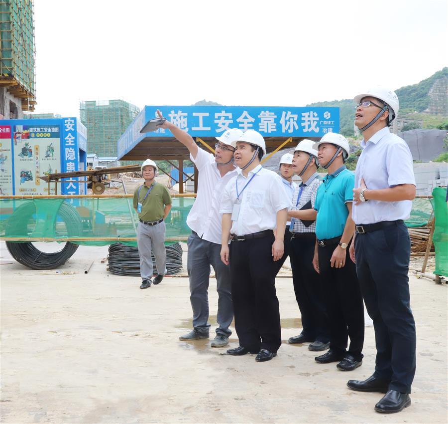 7月6日,廣西建工集團(tuán)有限責(zé)任公司副總經(jīng)理陳禮松率檢查組到廣西建工集團(tuán)冶金建設(shè)有限公司承建的麗景嘉苑1#~9#樓及地下室、社區(qū)衛(wèi)生服務(wù)中心項(xiàng)目開(kāi)展2018年上半年安全生產(chǎn)大檢查,冶建公司黨委書(shū)記、董事長(zhǎng)歐志永陪同檢查。
