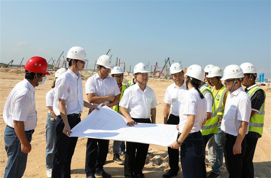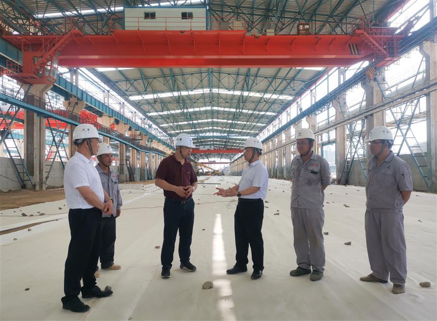 覃振華在防城港鋼鐵基地項(xiàng)目(一期)廢鋼處理系統(tǒng)金屬材料加工配送中心廠房及公輔設(shè)施建設(shè)項(xiàng)目現(xiàn)場了解情況