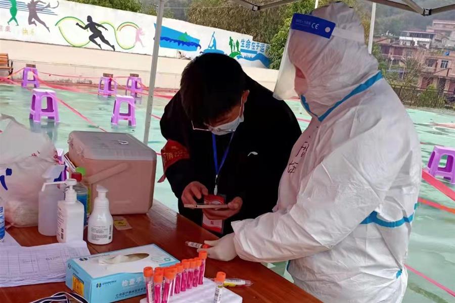 2月7日,阮斌在百色市田東縣印茶鎮(zhèn)那板村六內(nèi)屯青年志愿者隊(duì)參加志愿者工作。他每天除了協(xié)助醫(yī)務(wù)人員進(jìn)行核酸檢測(cè),還要與其他志愿者在村口站崗,仔細(xì)檢查每一位村民的兩碼并測(cè)量體溫。遇到不配合工作的老人,他還會(huì)耐心解釋當(dāng)前疫情防控政策,勸說他們不要離鄉(xiāng)走動(dòng),配合防疫工作人員做好疫情防控工作。不站崗時(shí),阮斌會(huì)和其他青年志愿者一起上門宣傳疫情防護(hù)知識(shí),幫助村民做核酸檢測(cè)前的信息錄入。有些老人不會(huì)使用手機(jī),阮斌便耐心將操作流程演示給老人看,再讓老人自行操作一次,遇到老人忘記操作的步驟時(shí),阮斌會(huì)一次又一次地演示,直到老人可以記住全部操作流程。