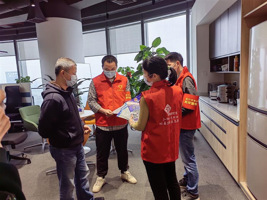 南寧片區(qū)各團(tuán)支部聯(lián)合開展“弘揚(yáng)時(shí)代新風(fēng)尚 志愿服務(wù)我先行”反詐宣傳活動(dòng)。