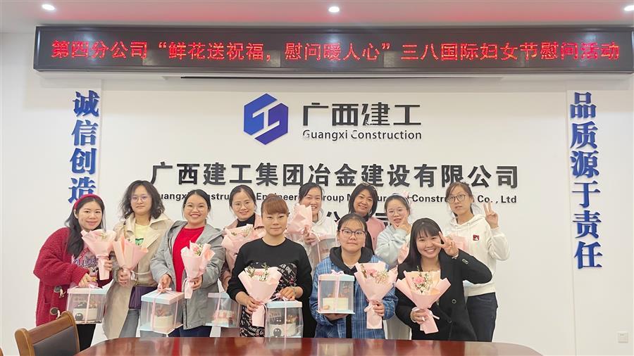 3月8日,冶建公司第四分公司開展“鮮花送巾幗 慰問暖人心”活動,為女員工送上真摯的節(jié)日祝福和親切的慰問,并為每一位女員工送上精美禮品和代表熱情、溫馨、感謝的康乃馨花束,感謝她們?yōu)楣景l(fā)展作出的貢獻。