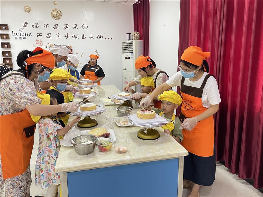 活動現(xiàn)場,家長和孩子們聆聽了紅色詩歌朗誦,現(xiàn)場共同繪制了主題畫作。并在講解員的帶領(lǐng)下參觀了中央工廠,了解了糕點生產(chǎn)過程。參觀后,大家一起觀看專業(yè)糕點師的現(xiàn)場教學(xué)并體驗了蛋糕制作。一個小時后,一個個造型別致、想象奇特、富有童趣的親子蛋糕新鮮出爐。家長與小朋友們手捧自己制作的蛋糕拍照,現(xiàn)場氛圍其樂融融。