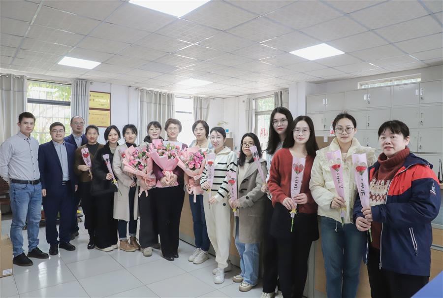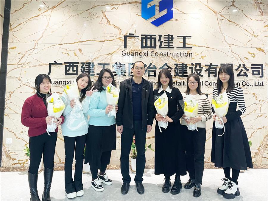 柳州市區(qū)農(nóng)村信用合作聯(lián)社潭中分社給冶建公司財務資產(chǎn)部女職工送上鮮花和節(jié)日祝福。